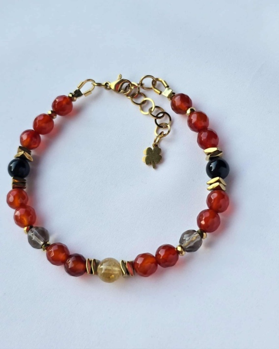 Odkryj wyjątkową bransoletkę stworzoną z naturalnych kamieni półszlachetnych, które łączą w sobie energię ziemi, ognia i światła. To nie tylko piękny dodatek, ale także talizman pełen mocy.