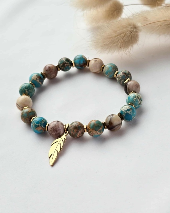 Jeśli szukasz biżuterii, która łączy estetykę, symbolikę i komfort noszenia, ta bransoletka z jaspisów z złotym piórkiem będzie doskonałym wyborem. Noś ją jako talizman harmonii, siły i lekkości każdego dnia. ✨
