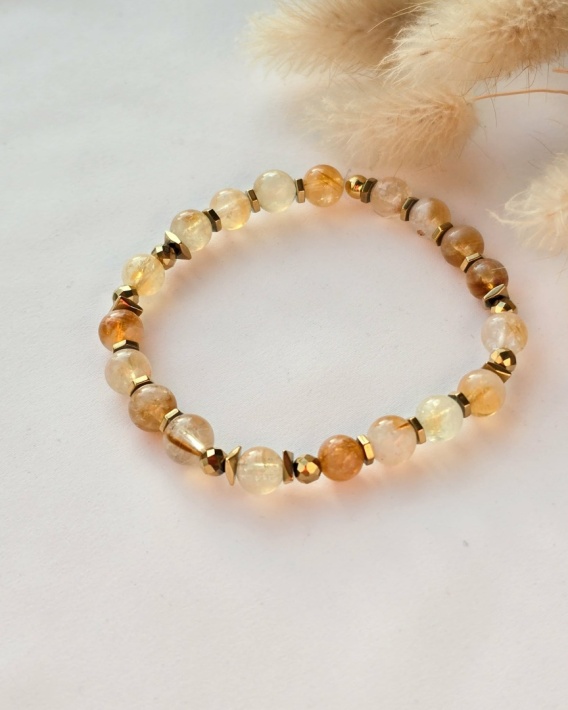 Odkryj wyjątkową biżuterię, która łączy elegancję z energią dobrobytu. Bransoletka na gumce z kamieni cytrynu i złotych hematytów to nie tylko stylowy dodatek, ale również symbol obfitości i wewnętrznej siły. Jeśli szukasz talizmanu wspierającego rozwój zawodowy i stabilność finansową – ta BRANSOLETKA BOGACTWO I SUKCES FINANSOWY została stworzona właśnie dla Ciebie.