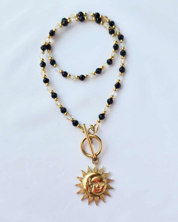 Naszyjnik „Zaćmienie” to wyjątkowa biżuteria z naturalnych kamieni, inspirowana harmonią przeciwieństw – światła i ciemności, dnia i nocy. Połączenie czarnego turmalinu oraz cytrynu tworzy nie tylko elegancki, ponadczasowy design, ale również silny amulet energetyczny.